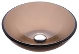 Fashionable bathroom sink is the perfect harmony of elegance and style. Eye-catching Kraus glass vessel sink will turn an ordinary bathroom into a lavish space Sink provides an easy home improvement project. Brown Glass sink is constructed from solid tempered glass. Sink features polished glass interior and exterior. Designed for above counter installation with standard US plumbing connections. Solid brass umbrella pop-up drain and mounting ring are included. Installation parts are available in Chrome, Satin nickel, Antique brass; Oil rubbed bronze and Gold finishes. Diameter: 14-Inch Height: 5.5-Inch Glass thickness: 0.5-Inch (12 mm) Mounting ring adds 0.5-Inch 1.75-Inch standard drain opening Manufactured by Kraus. Limited Lifetime Warranty. Certified and Listed by UPC, cUPC, CSA, IAPMO, ANSI and SCC